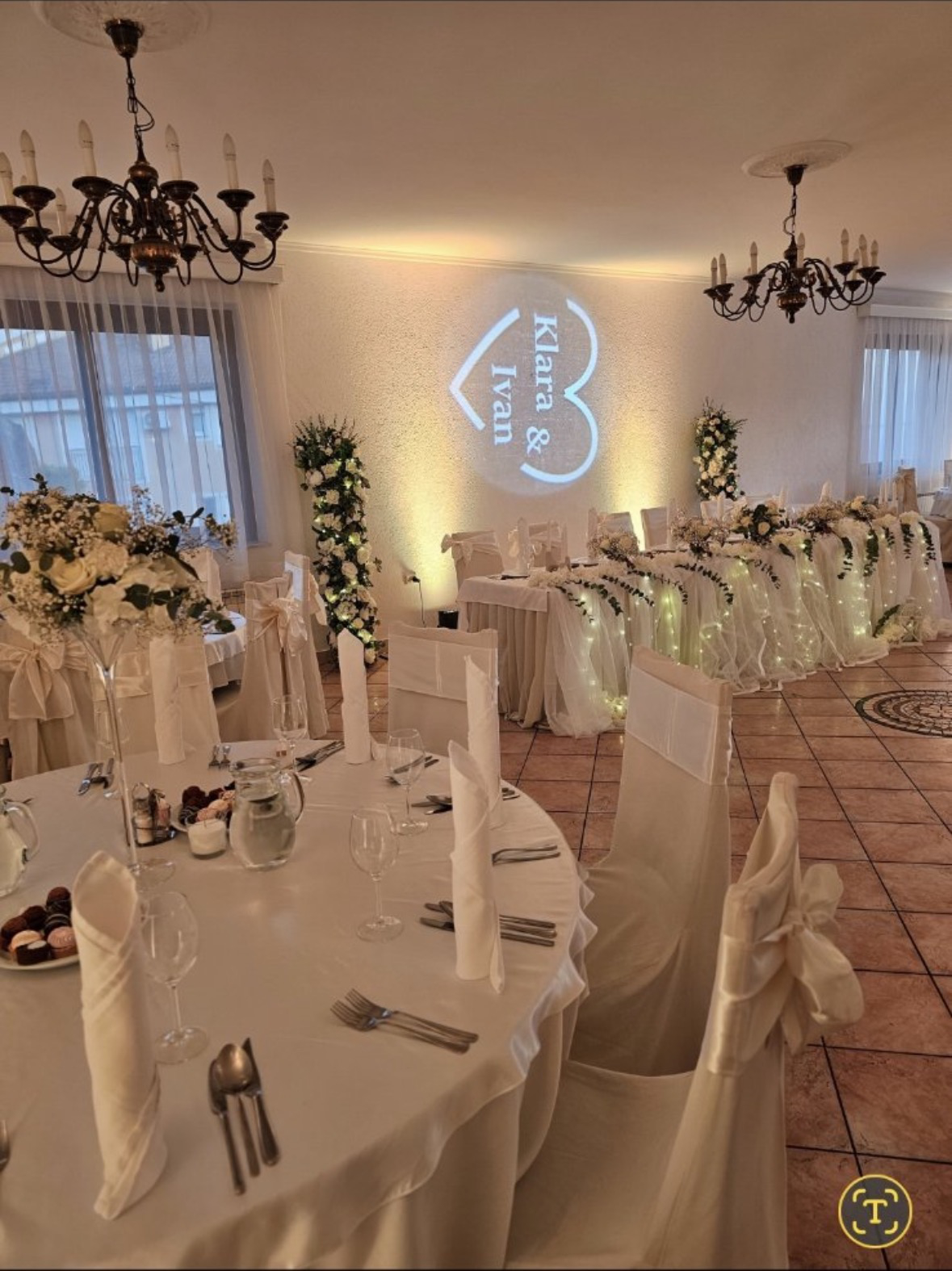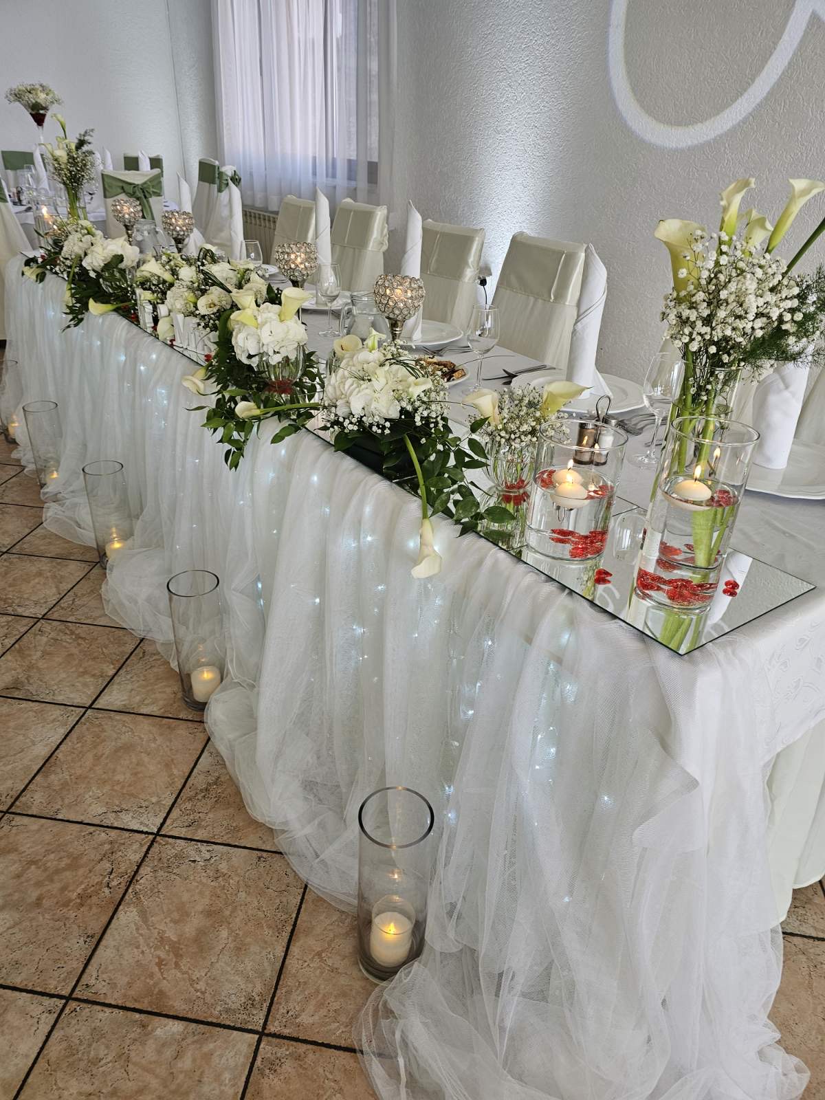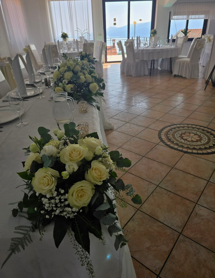 U sklopu ponude, Villa Mira mladencima besplatno osigurava svečano uređenje sale, uključujući bijele navlake za stolice i dekoracije u boji po vašem izboru, kako bi ambijent odgovarao vašim željama i stilu vjenčanja.